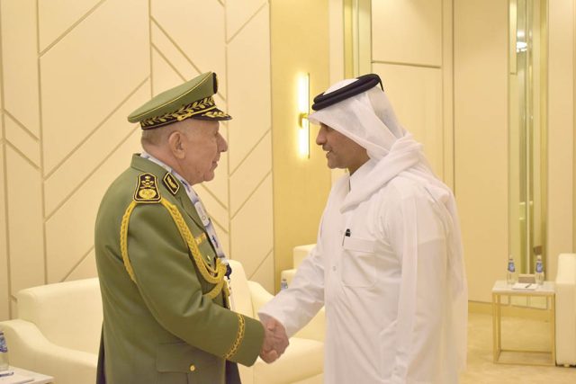 A l’issue de la cérémonie d’ouverture officielle de cet événement mondial, supervisé par Son Altesse l’Émir de l’État du Qatar, « le général d’Armée a visité, avec la délégation qui l’accompagne, quelques stands de l’exposition, où il s’est enquis du matériel et des équipements exposés, à l’instar des armes et des systèmes d’armes de haute technologie et a suivi attentivement les explications détaillées et les présentations fournies par les responsables des stands », précise le MDN, ajoutant que « le général d’Armée s’est entretenu avec Son Excellence Cheikh Saoud Ben Abderhamne Al Thani, Vice premier-ministre et ministre d’Etat chargé des Affaires de la Défense de l’Etat du Qatar. » A cette occasion, précise la même source, le général d’Armée a exprimé « ses sincères remerciements pour l’accueil chaleureux et l’hospitalité qui lui ont été réservés ». Le Général d’Armée « a également passé en revue les domaines de coopération militaire entre les deux Armées, qui connaissent une dynamique importante sous l’égide des dirigeants des deux pays, et de leur volonté commune de la renforcer davantage et l’amener à son niveau escompté. » De son côté, Son Excellence Cheikh Saoud Ben Abderhamne Al Thani « a mis en exergue le haut niveau de coopération militaire entre les deux pays frères », souligne le communiqué du MDN rapportant qu’à l’issue de la rencontre, les deux parties ont échangé des cadeaux symboliques. Par ailleurs, le général d’Armée a également eu une rencontre fraternelle avec le Général de Corps d’Armée Jassim Ben Mohammed Al Mannai, Chef d’Etat-Major des Forces Armées Qataries, au cours de laquelle « les deux parties ont évoqué l’état de la coopération militaire entre les armées des deux pays et les moyens de la porter à la hauteur des excellentes relations qu’entretiennent l’Algérie et le Qatar, et au niveau des aspirations des dirigeants des deux pays frères », indique le même communiqué. À cette occasion, le Général d’Armée « a salué la qualité des relations algéro-qataries durant ces dernières années, lesquelles ne cessent de connaitre un fort essor et une dynamique remarquable. » De son côté, le Chef d’Etat-major des Forces Armées Qataries, « a salué la qualité des relations de coopération militaire bilatérale entre les deux pays frères, tout en exprimant ses vifs remerciements à Monsieur le Général d’Armée pour avoir répondu favorablement à l’invitation ». À l’issue de cette rencontre, les deux parties ont échangé des cadeaux symboliques, conclut le MDN.